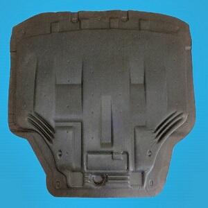 玻璃纖維(GF)和PP(聚合纖維)通過熱材冷模的特殊工藝製程,根據應用產品的不同特性混合不同比例的玻纖和聚合纖維通過扎針方式制成棉卷或板狀,在生產過程中可應不同需求加入複合型材料如PE膜、PP膜、不織布等各類輔材,且生產過程中不使用任何膠黏劑便可直接與應用產品之裝飾性材料結合,節省生產步驟及加工成本,從而提高生產效率。